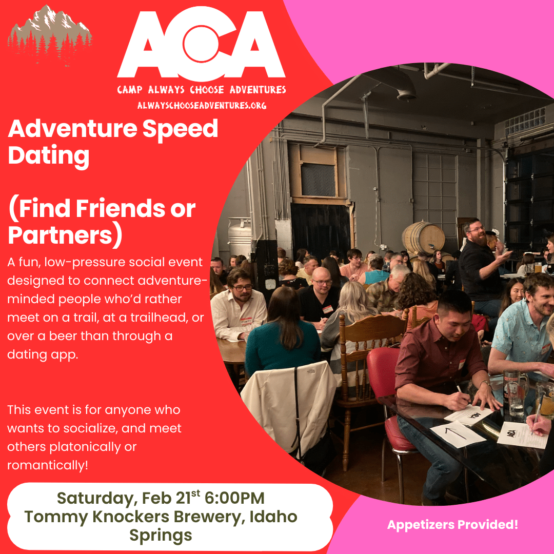 A fun, low-pressure social event designed to connect adventure-minded people who’d rather meet on a trail, at a trailhead, or over a beer than through a dating app. This event creates a relaxed, welcoming space for genuine conversations—no awkward pressure, no forced matches. Participants will rotate through short, casual conversations with fellow outdoor-loving folks from […]